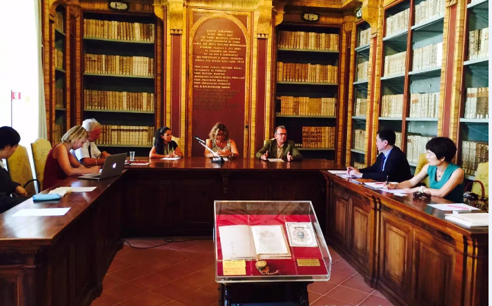 佩鲁贾外国人大学创办于1921年,是意大利最著名的向外国学生传播意大利语言和文化的大学。在佩鲁贾外国人大学,张冬平院长一行与该校校长Giovanni Paciullo先生和助理进行了会谈交流,双方在意大利语言培训上达成共识,对方愿意向我校分享在校授课系统,并乐意与我校一起探讨授课模式。