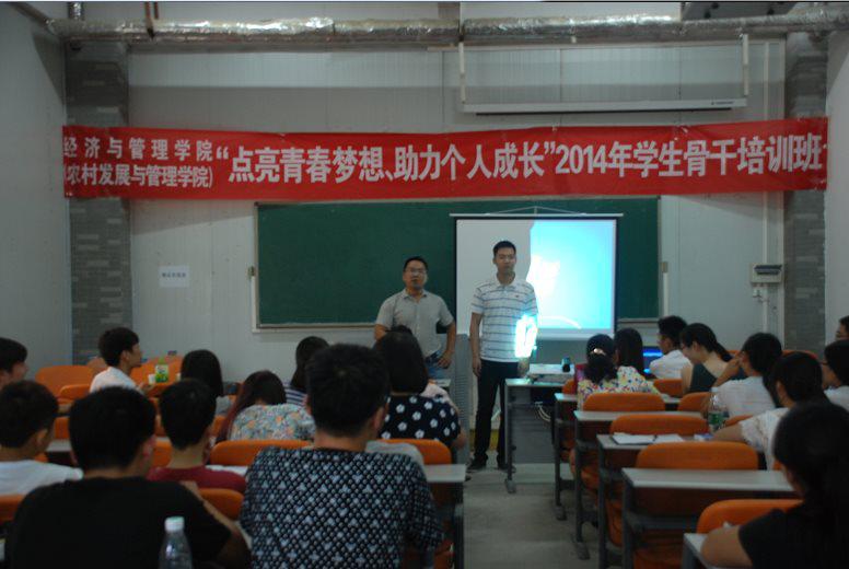 “点亮青春梦想,助力个人成长”2014年学生骨干培训班之创业分享会在兰亭大四举行。河南广发财务管理有限公司总经理袁军,郑州真派商贸有限公司总经理张啸宇及速录服务有限公司总经理庞少鹏作为嘉宾出席此次分享会。院团委书记郭娟、团委老师张倩、杨鑫、杜世杰及全体学生干部参加。会议由郭老师主持。