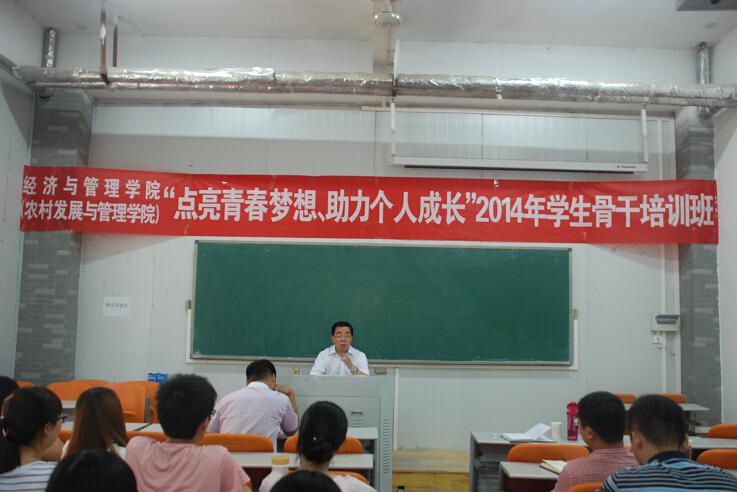 8月31日下午,院党委书记张泽星出席色色网站 2014年学生骨干培训班并为全体学生骨干作辅导报告。院团委书记郭娟、副书记王金铎、团委老师杨鑫、黄妍、杜世杰及全体学生干部参加此次报告会。会议由郭娟老师主持。