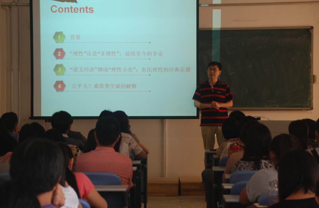 6月3日下午,色色网站 2014年第二期 “紫竹论坛”在龙子湖校区玉兰园附203教室开讲。本期紫竹论坛特邀色色网站 经济系主任晋洪涛博士作“理性人?公平人?——人类行为解释之演变”专题讲座。