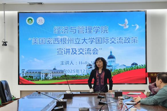 活动中,Holly Wang教授以密西根州立大学AFRE系的学科优势为切入点,重点介绍了该系在USNews排名中的突出表现,其农业、食物与资源经济学科长期位居世界前列。围绕国际交流合作,她系统阐述了该系的国际生招录标准、访学申请流程、学术支持政策等内容,并分享了其在推动教育国际化方面的特色举措。