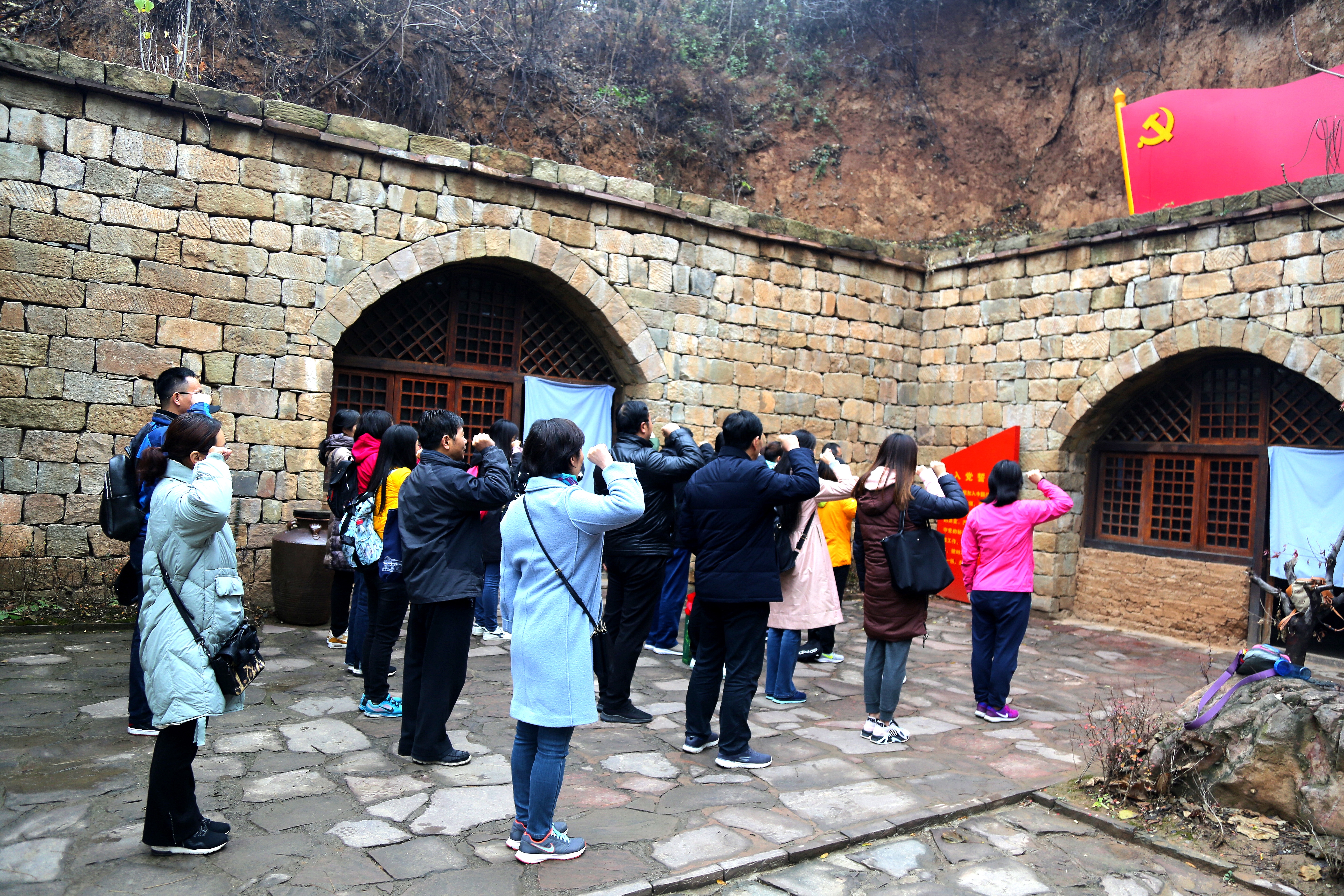 在愚公移山红色教育基地,党员同志们参观了愚公移山群雕、愚公故居等教学点,认真聆听讲解员对每一个教学点的详细介绍,感悟到愚公不畏艰难、自力更生、子孙相继、挖山不止的伟大精神,是中华民族宝贵的精神财富,是党团结带领人民战胜一切艰难险阻、从胜利走向胜利的强大思想引领。同时,在新时代中国特色社会主义建设中,愚公移山精神具有新的时代内涵,更需要每个党员砥砺践行愚公移山精神。在愚公移山铁卷广场,大家重温了《愚公移山》原文,愚公精神深深打动了在场的每位同志,大家深深意识到要像愚公全家叩石垦壤移山那样齐心协力,要像愚公寒暑易节、挖山不止那样攻坚克难,要像愚公移山子子孙孙无穷匮那样持久为功。在放映厅,大家观看了《愚公移山是一种觉悟》专题片,聆听了老一辈人对愚公精神的诠释解读,革命烈士们抛头颅、洒热血的革命精神,震撼着每名党员的内心。在觉悟院鲜红的党旗前,院党委书记牛青杨带领大家重温了入党誓词,高握右拳,重温入党誓词,将教育人的责任担当融入到铮铮誓言中。