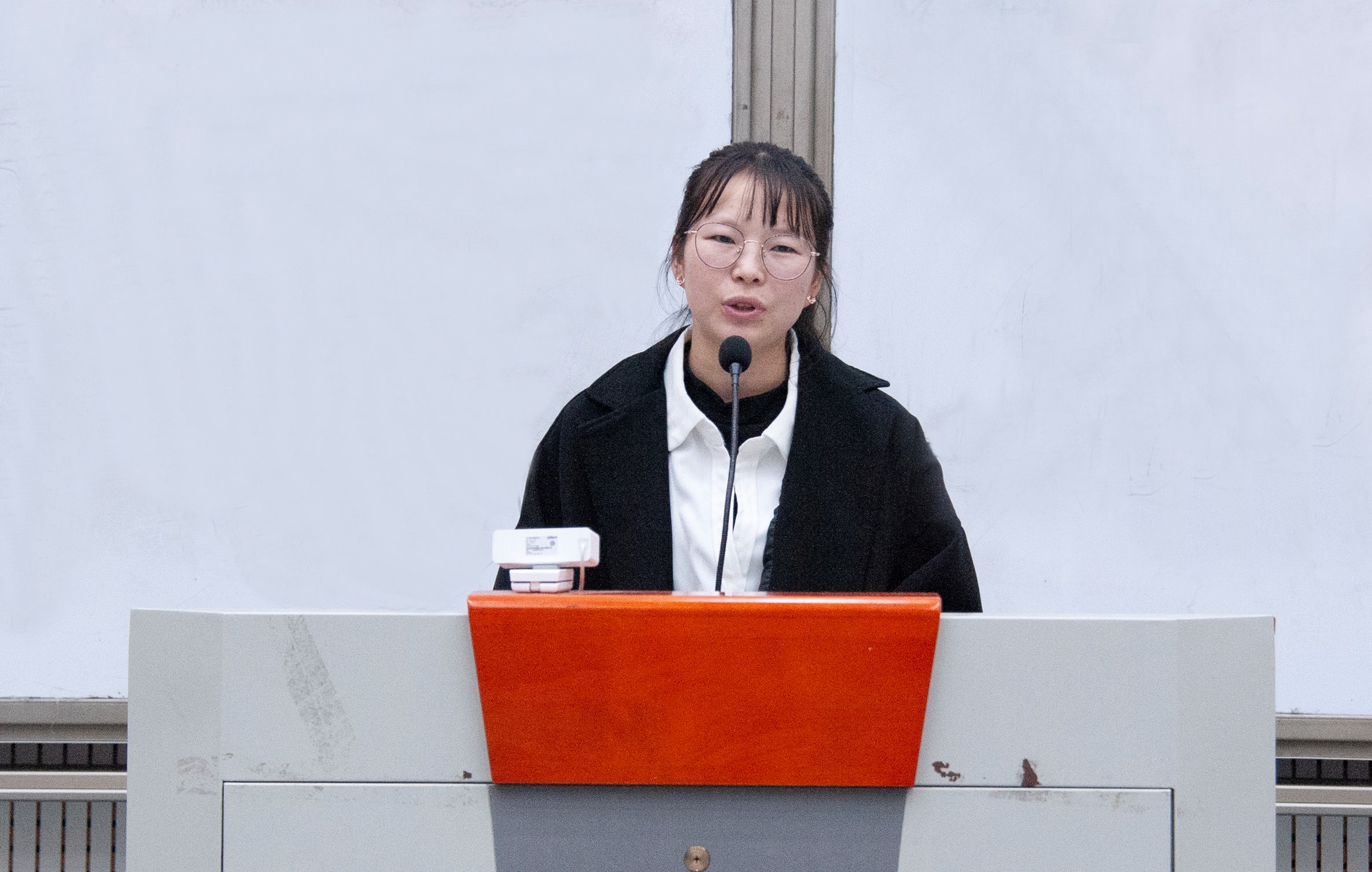在主持人进行精彩的开场白后,此次活动正式拉开了帷幕。首先,四位高年级优秀学生代表依次上台发言。他们借助精心准备的PPT,热情大方地向同学们分享了大学以来个人的学习经验、生活经历、及工作感想,鼓励新同学们要树立大学目标、合理安排时间、养成独立思考的习惯。